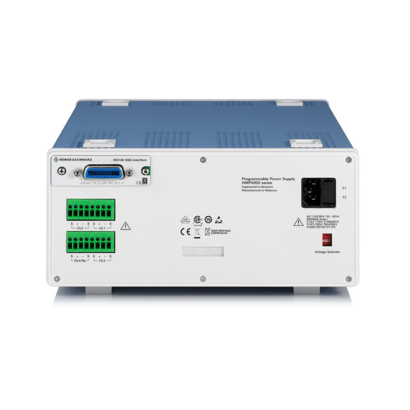 В зависимости от типа прибора доступно до четырёх гальванически развязанных плавающих выходных каналов с защитой от перегрузки и короткого замыкания. Каналы могут быть соединены последовательно или параллельно для получения более высоких напряжений или токов. Например, R&S®HMP4040 обеспечивает максимальное напряжение 128 В или максимальный ток 40 А.